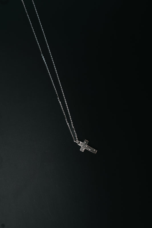 Collana croce pendente con diamanti bianchi e diamanti neri