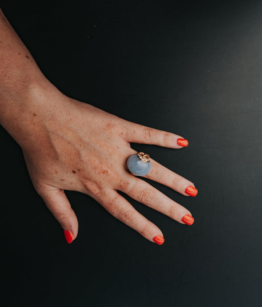Anello Gianni Carità in oro bianco, oro brunito, agata bianca e diamanti.